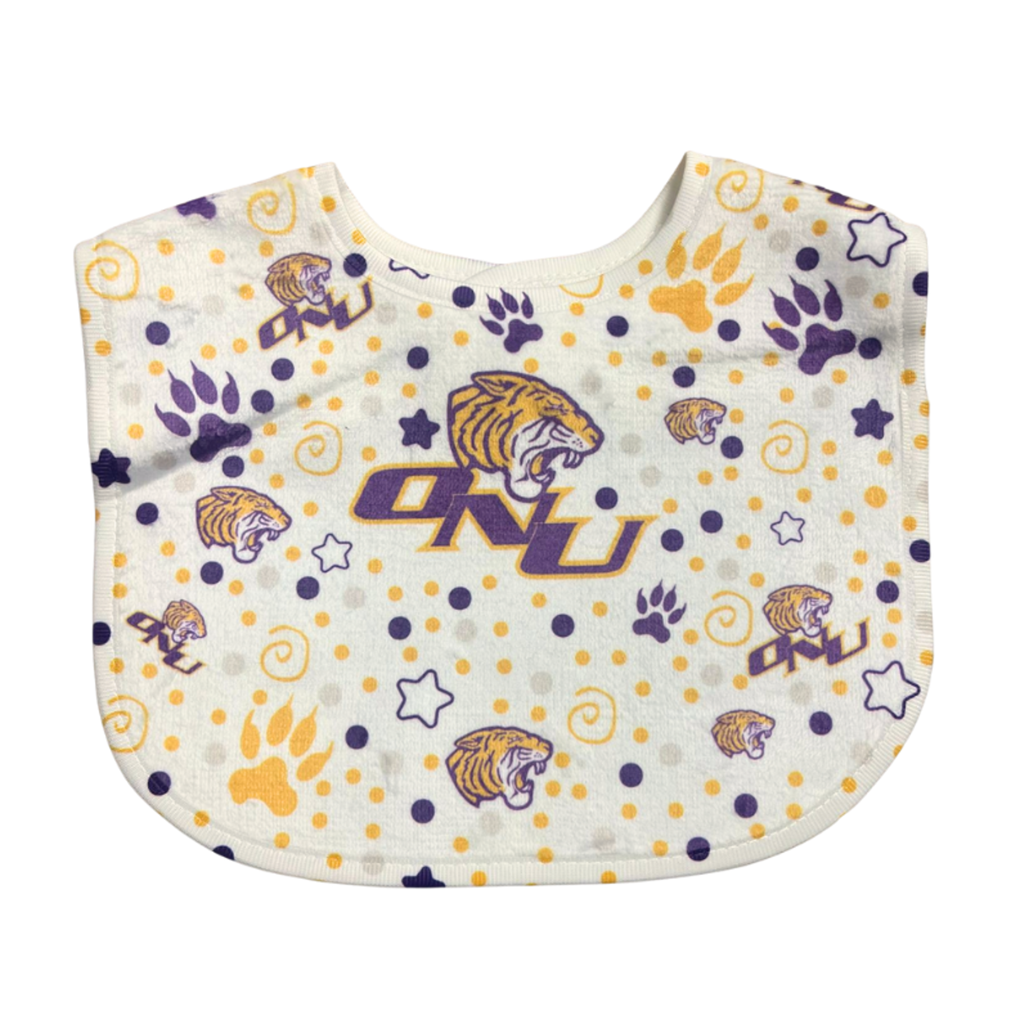 - Graphic - Full Sublimated White Bib, with both College marks - ONU Logo and stand-alone paw prints with added polka dots